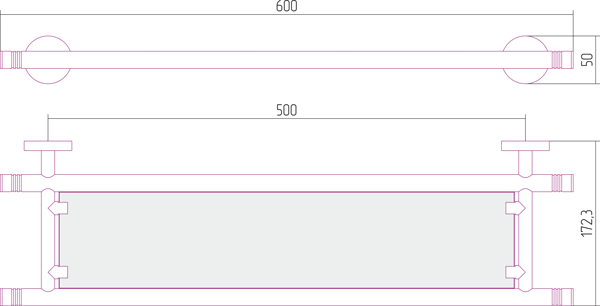 Полка Сунержа КАНЬОН стеклянная / L 600, золото, 03-3003-0600