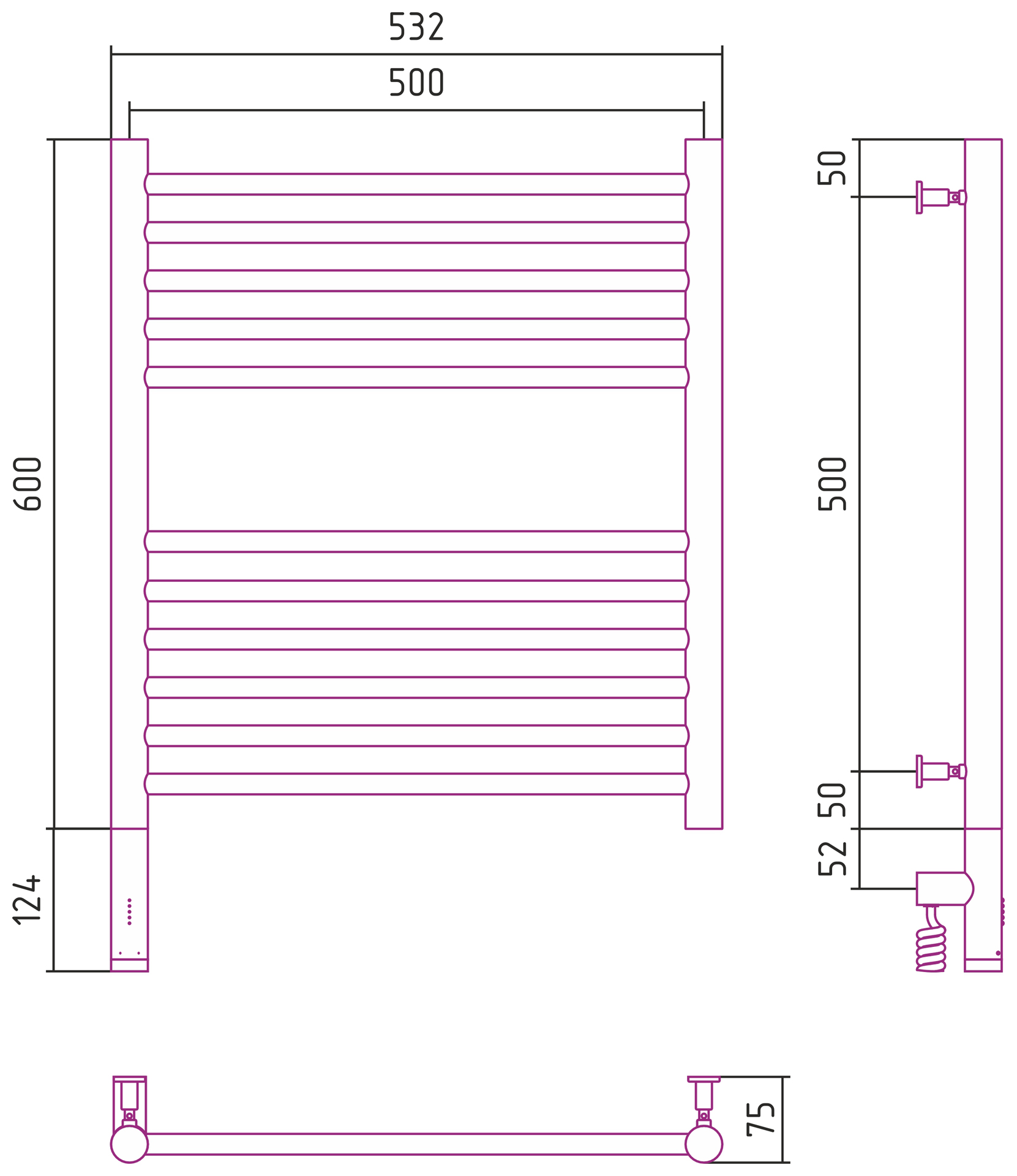 Полотенцесушитель электрический Сунержа Богема 3.0 прямая 600х500 МЭМ левый, состаренная латунь, 051