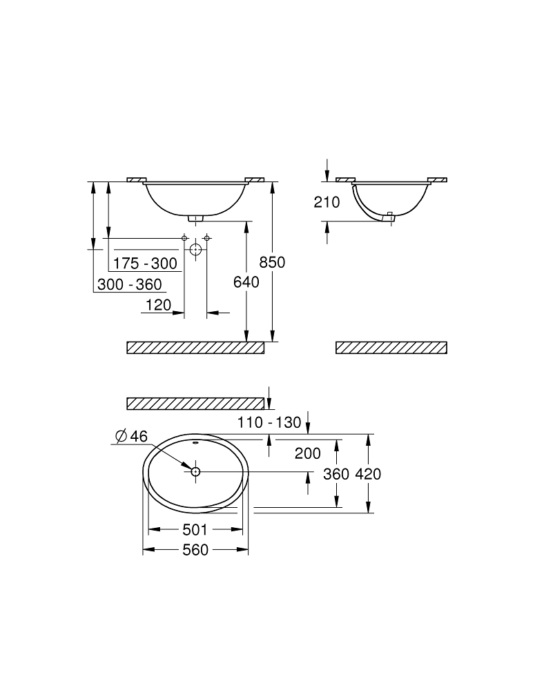 Универсальные вентили Раковина встраиваемая 55 Grohe 39423000, цвет альпин-белый