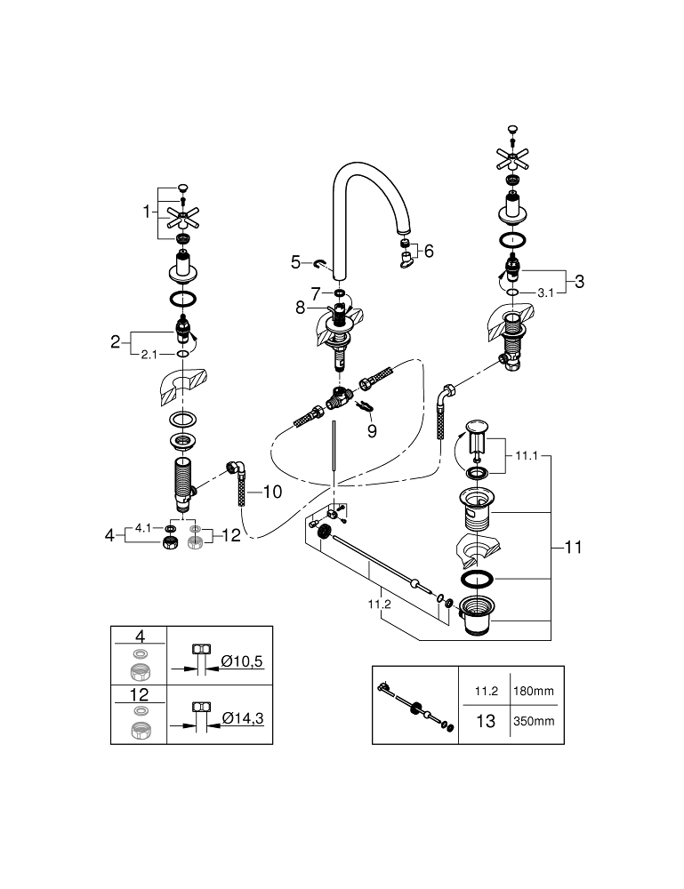 Смеситель для раковины на три отверстия, DN 15 M-Size Grohe Atrio 20008003, цвет хром